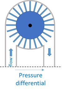 Ein ähnliches Verhalten zeigt eine Turbine in einer Wasserleitung. Die Trägheit der Turbine wirkt einer Änderung des Durchflusses entgegen, in dem durch die Turbine ein Druck aufgebaut wird.