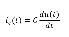 Mit Worten beschrieben fließt ein Strom durch den Kondensator, wenn eine zeitliche Änderung der Spannung am Kondensator erfolgt. Sinkt die Spannung, so fließt Ladung aus dem Kondensator. Im Gegenzug wird der Kondensator aufgeladen, wenn die Spannung an ihm steigt.