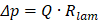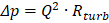 In der Pneumatik liegt oft der Fall einer rau-turbulenten Strömung vor und es ergibt sich eine quadratische Abhängigkeit der Druckverluste Δp vom Durchfluss Q. In Analogie zur Elektrotechnik gilt nun Rₜᵤʳᵇ und der Zusammenhang